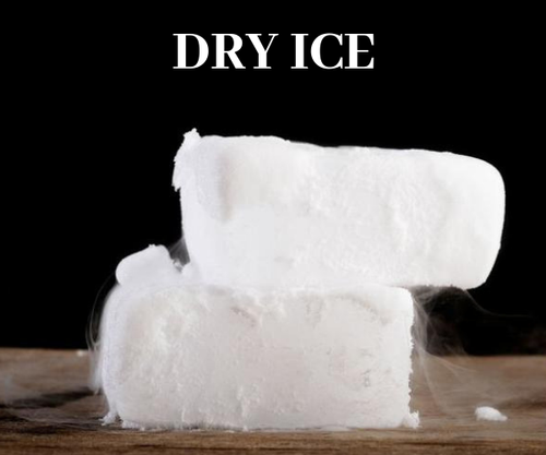 Dry ice is the solid form of carbon dioxide. It is used primarily as a cooling agent, but is also used in fog machines at theatres for dramatic effects. Its advantages include lower temperature than that of water ice and not leaving any residue.